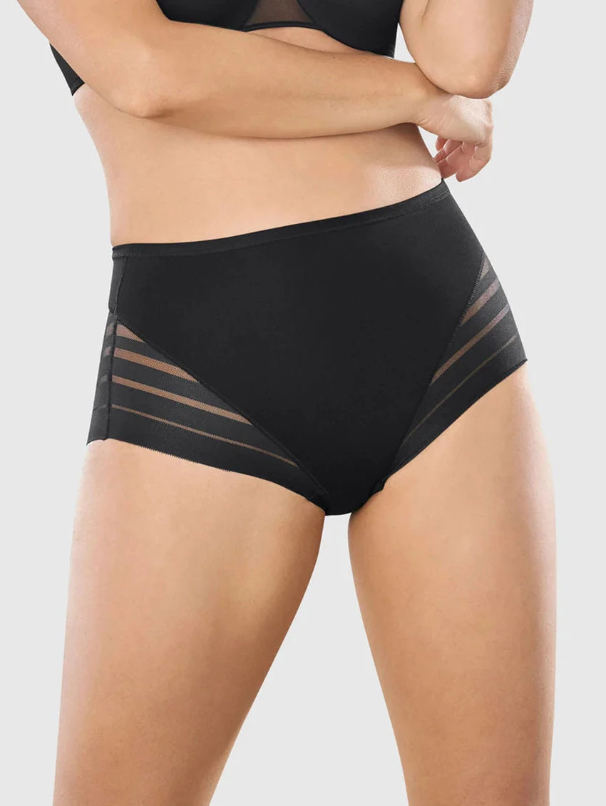 Everyone will see the effect, but nobody will see the panty lines! This shaper panty is more than underwear: it’s made with a trademark DuraFit® fabric to gently smooth out your silhouette and flatten your tummy. Contrasting bands of their signature SmartLace® give this panty a stylish look. The semi-sheer bottom has ultra-flat, seamless leg bands, so it’s invisible under clothes.