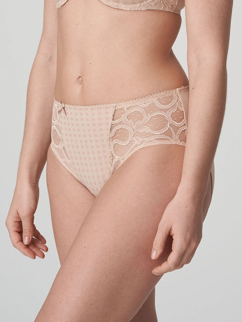 Ultra soft microfiber, signature checkerboard print material, and sophisticated stretch lace characterize Madison’s classic design. With wide sides and a traditional high rise that ensures comfort.